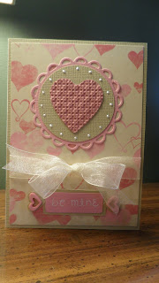 I'm posting 2 cards, one feminine and one not as feminine. On the pink one I used some funky little hearts on the sides of "Be Mine". Both of the patterned papers I had in my stash and wanted to use up. And can you believe it? No Whippers!